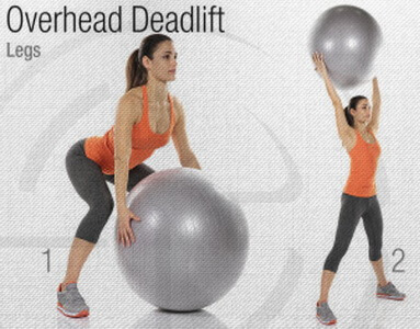 2. Stand upright and lift your ball overhead, extending your arms fully.